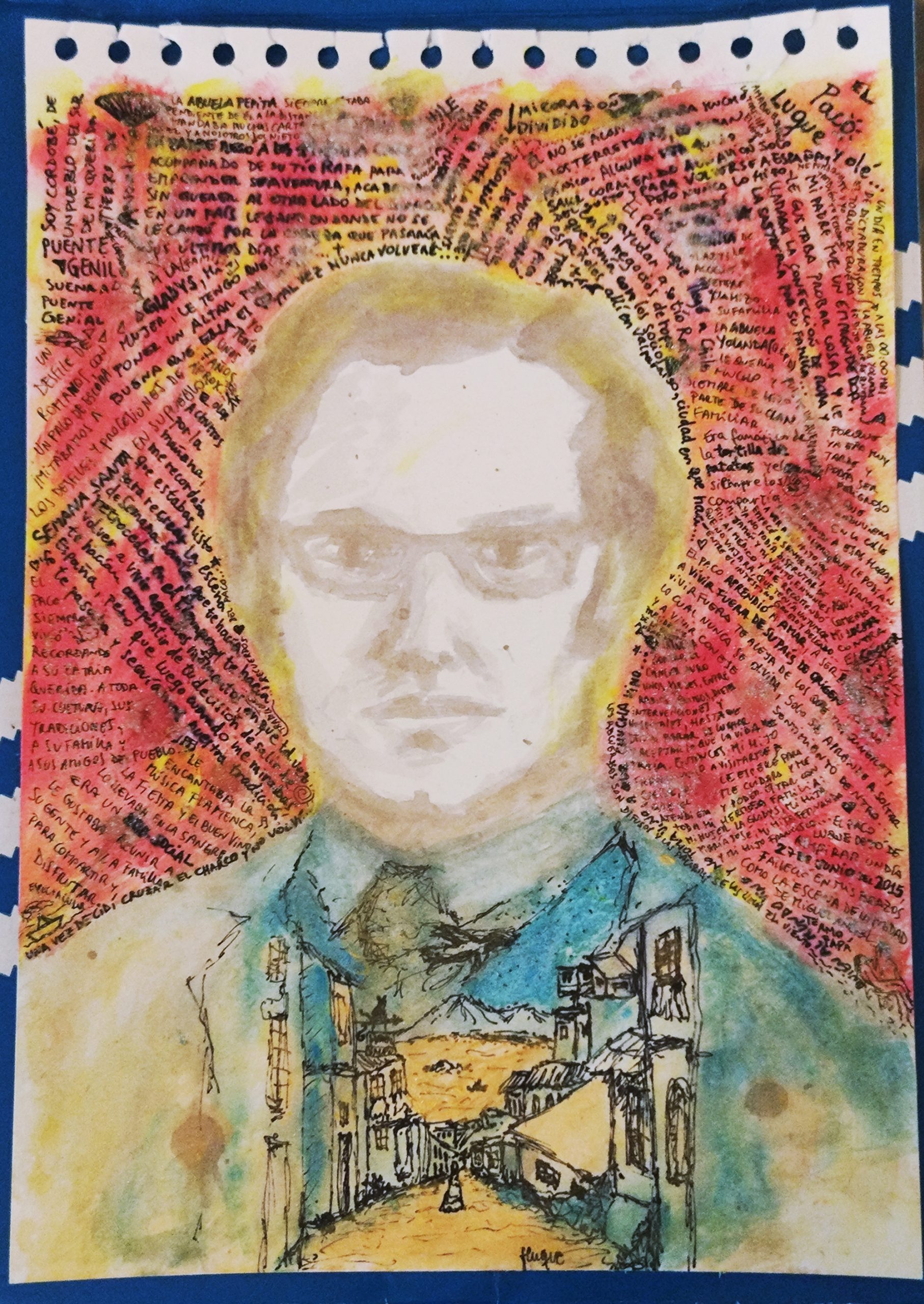 Técnica mixta: Vino, pigmentos de cocina, acrílico, azúcar y lápiz tinta.